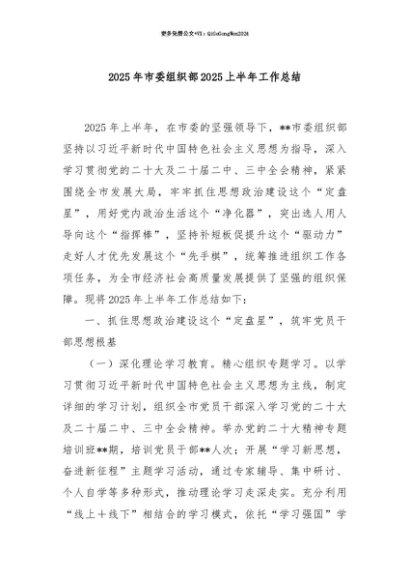 【七哥公文】2025年:【七哥公文】2025年市委组织部2025上半年工作总结+更多免费公文+VX:QiGeGongWen2024+更多免费公文+VX:QiGeGongWen2024