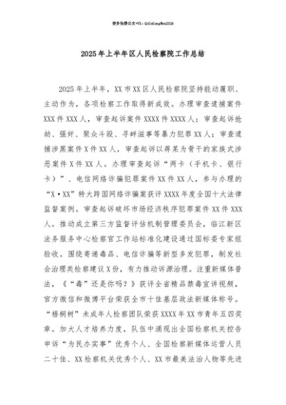 【七哥公文】2025年:【七哥公文】2025年上半年区人民检察院工作总结+更多免费公文+VX:QiGeGongWen2024+更多免费公文+VX:QiGeGongWen2024