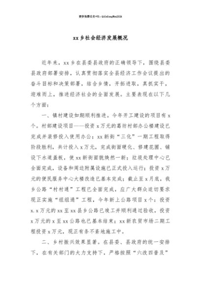 【七哥公文】2025年:【七哥公文】xx乡社会经济发展概况+更多免费公文+VX:QiGeGongWen2024+更多免费公文+VX:QiGeGongWen2024