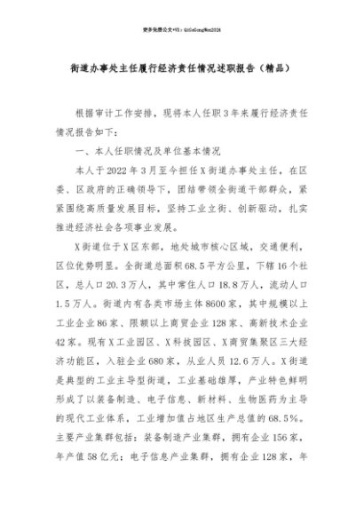 【七哥公文】2025年:【七哥公文】街道办事处主任履行经济责任情况述职报告(精品)+更多免费公文+VX:QiGeGongWen2024+更多免费公文+VX:QiGeGongWen2024