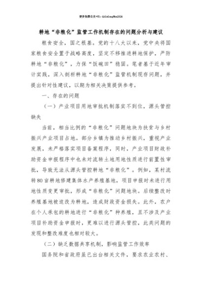 【七哥公文】2025年:【七哥公文】耕地“非粮化”监管工作机制存在的问题分析与建议+更多免费公文+VX:QiGeGongWen2024+更多免费公文+VX:QiGeGongWen2024