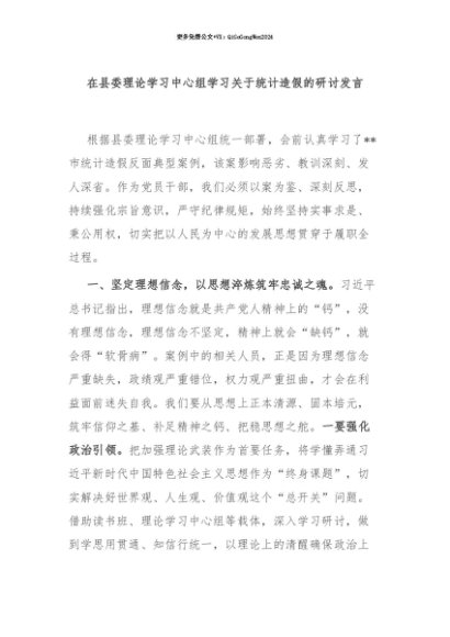 【七哥公文】2025年:【七哥公文】在县委理论学习中心组学习关于统计造假的研讨发言+更多免费公文+VX:QiGeGongWen2024+更多免费公文+VX:QiGeGongWen2024