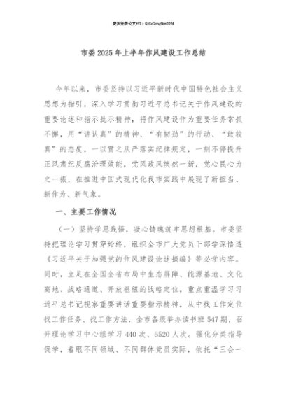 【七哥公文】2025年:【七哥公文】市委2025年上半年作风建设工作总结+更多免费公文+VX:QiGeGongWen2024+更多免费公文+VX:QiGeGongWen2024