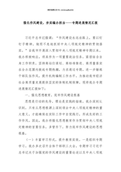 【七哥公文】2025年:【七哥公文】强化作风建设,夯实编办担当——专题进展情况汇报+更多免费公文+VX:QiGeGongWen2024+更多免费公文+VX:QiGeGongWen2024