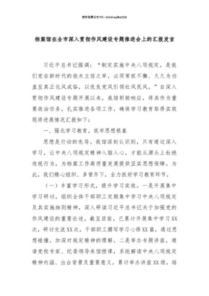 【七哥公文】2025年:【七哥公文】档案馆在全市深入贯彻作风建设专题推进会上的汇报发言+更多免费公文+VX:QiGeGongWen2024+更多免费公文+VX:QiGeGongWen2024