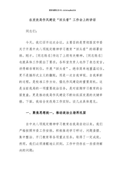 【七哥公文】2025年:【七哥公文】在发改局作风建设“回头看”工作会上的讲话+更多免费公文+VX:QiGeGongWen2024+更多免费公文+VX:QiGeGongWen2024