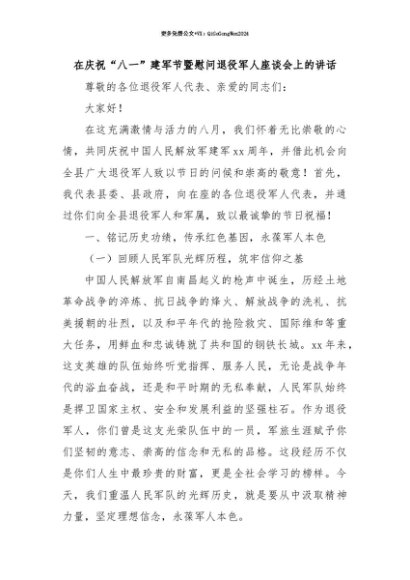 【七哥公文】2025年:【七哥公文】在庆祝“八一”建军节暨慰问退役军人座谈会上的讲话+更多免费公文+VX:QiGeGongWen2024+更多免费公文+VX:QiGeGongWen2024