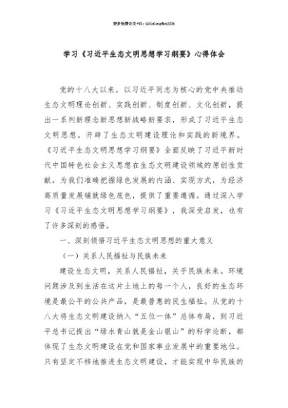 【七哥公文】2025年:【七哥公文】学习《习近平生态文明思想学习纲要》心得体会+更多免费公文+VX:QiGeGongWen2024+更多免费公文+VX:QiGeGongWen2024