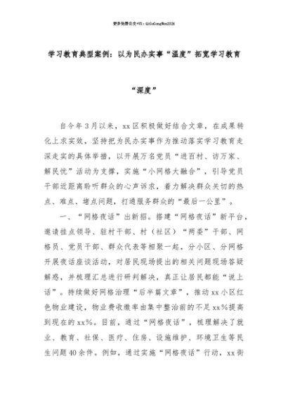 【七哥公文】2025年:【七哥公文】学习教育典型案例:以为民办实事“温度”拓宽学习教育“深度”+更多免费公文+VX:QiGeGongWen2024+更多免费公文+VX:QiGeGongWen2024