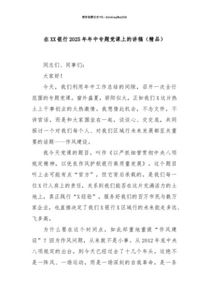 【七哥公文】2025年:【七哥公文】在XX银行2025年年中专题党课上的讲稿(精品)+更多免费公文+VX:QiGeGongWen2024+更多免费公文+VX:QiGeGongWen2024