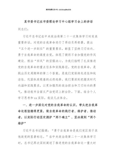【七哥公文】2025年:【七哥公文】某市委书记在市委理论学习中心组学习会上的讲话+更多免费公文+VX:QiGeGongWen2024+更多免费公文+VX:QiGeGongWen2024