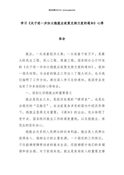 【七哥公文】2025年:【七哥公文】学习《关于进一步加大稳就业政策支持力度的通知》心得体会+更多免费公文+VX:QiGeGongWen2024+更多免费公文+VX:QiGeGongWen2024