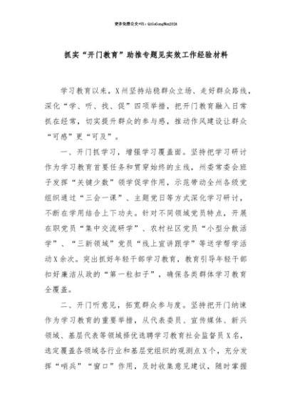 【七哥公文】2025年:【七哥公文】抓实“开门教育”助推专题见实效工作经验材料+更多免费公文+VX:QiGeGongWen2024+更多免费公文+VX:QiGeGongWen2024