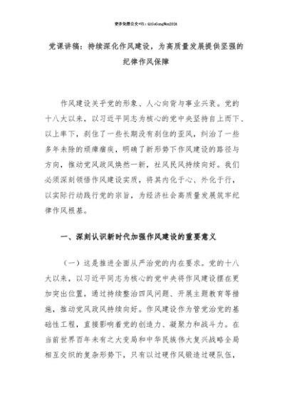 【七哥公文】2025年:【七哥公文】党课讲稿:持续深化作风建设,为高质量发展提供坚强的纪律作风保障+更多免费公文+VX:QiGeGongWen2024+更多免费公文+VX:QiGeGongWen2024
