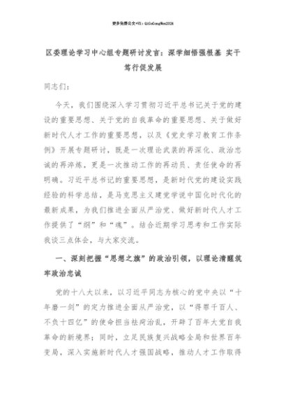 【七哥公文】2025年:【七哥公文】区委理论学习中心组专题研讨发言:深学细悟强根基 实干笃行促发展+更多免费公文+VX:QiGeGongWen2024+更多免费公文+VX:QiGeGongWen2024