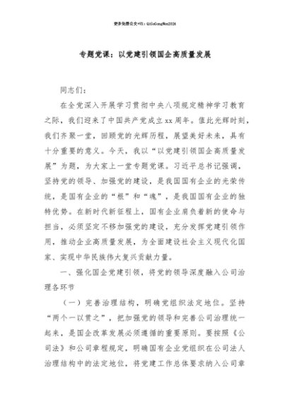 【七哥公文】2025年:【七哥公文】专题党课:以党建引领国企高质量发展+更多免费公文+VX:QiGeGongWen2024+更多免费公文+VX:QiGeGongWen2024