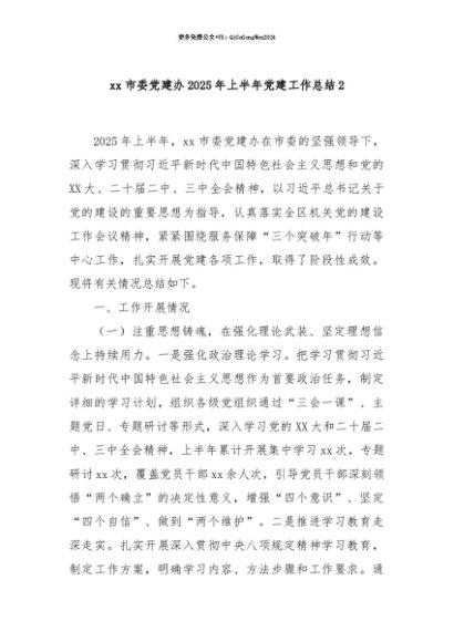 【七哥公文】2025年:【七哥公文】xx市委党建办2025年上半年党建工作总结2+更多免费公文+VX:QiGeGongWen2024+更多免费公文+VX:QiGeGongWen2024