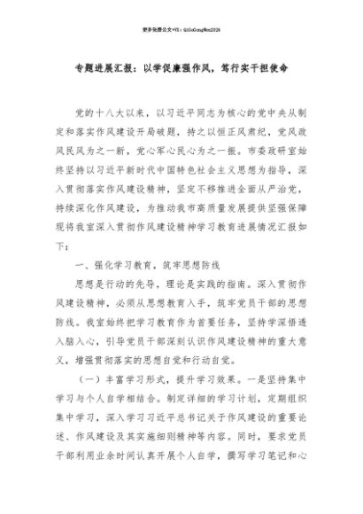 【七哥公文】2025年:【七哥公文】专题进展汇报:以学促廉强作风,笃行实干担使命+更多免费公文+VX:QiGeGongWen2024+更多免费公文+VX:QiGeGongWen2024