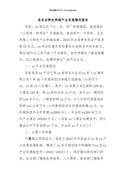 【七哥公文】2025年:【七哥公文】县农业特色养殖产业发展情况报告+更多免费公文+VX:QiGeGongWen2024+更多免费公文+VX:QiGeGongWen2024