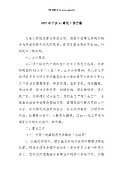 【七哥公文】2025年:【七哥公文】2025年平安xx建设工作方案+更多免费公文+VX:QiGeGongWen2024+更多免费公文+VX:QiGeGongWen2024
