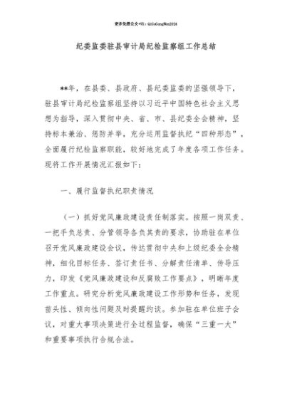 【七哥公文】2025年:【七哥公文】纪委监委驻县审计局纪检监察组工作总结+更多免费公文+VX:QiGeGongWen2024+更多免费公文+VX:QiGeGongWen2024