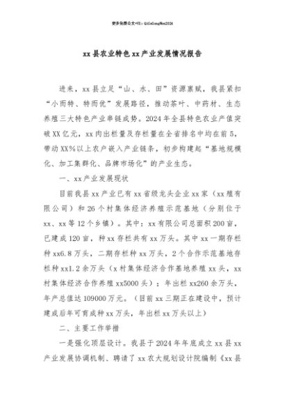 【七哥公文】2025年:【七哥公文】xx县农业特色xx产业发展情况报告+更多免费公文+VX:QiGeGongWen2024+更多免费公文+VX:QiGeGongWen2024