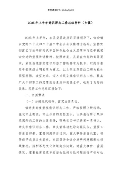 【七哥公文】2025年:【七哥公文】2025 年上半年意识形态工作总结材料(乡镇)+更多免费公文+VX:QiGeGongWen2024+更多免费公文+VX:QiGeGongWen2024