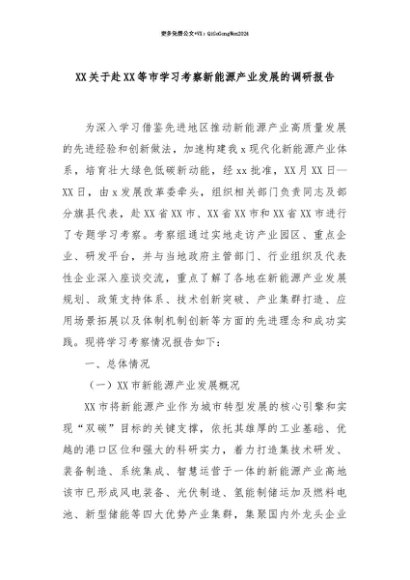 【七哥公文】2025年:【七哥公文】XX关于赴XX等市学习考察新能源产业发展的调研报告+更多免费公文+VX:QiGeGongWen2024+更多免费公文+VX:QiGeGongWen2024