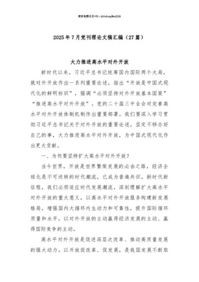 【七哥公文】2025年:【七哥公文】(27篇)2025年7月党刊理论文稿汇编+更多免费公文+VX:QiGeGongWen2024+更多免费公文+VX:QiGeGongWen2024