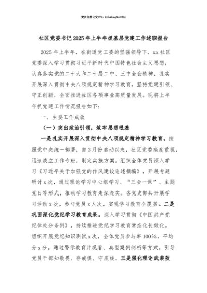 【七哥公文】2025年:【七哥公文】社区党委书记2025年上半年抓基层党建工作述职报告+更多免费公文+VX:QiGeGongWen2024+更多免费公文+VX:QiGeGongWen2024