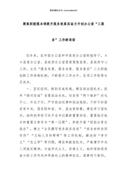 【七哥公文】2025年:【七哥公文】聚焦职能强本领提升服务抓落实奋力开创办公室“三服务”工作新局面+更多免费公文+VX:QiGeGongWen2024+更多免费公文+VX:QiGeGongWen2024