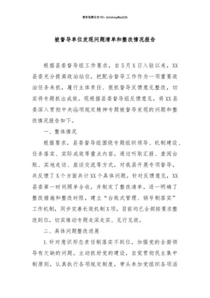 【七哥公文】2025年:【七哥公文】被督导单位发现问题清单和整改情况报告+更多免费公文+VX:QiGeGongWen2024+更多免费公文+VX:QiGeGongWen2024