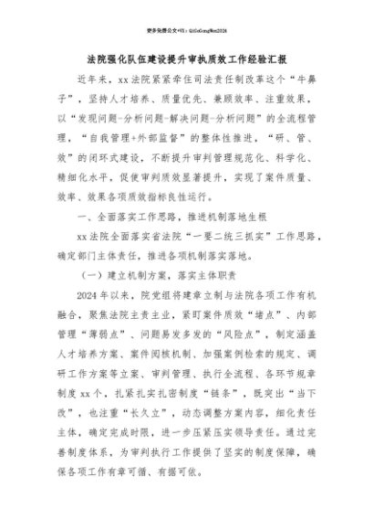 【七哥公文】2025年:【七哥公文】法院强化队伍建设提升审执质效工作经验汇报+更多免费公文+VX:QiGeGongWen2024+更多免费公文+VX:QiGeGongWen2024