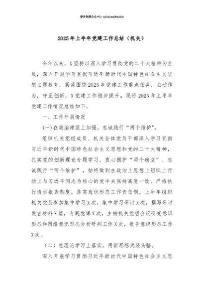 【七哥公文】2025年:【七哥公文】2025 年上半年党建工作总结(机关)+更多免费公文+VX:QiGeGongWen2024+更多免费公文+VX:QiGeGongWen2024
