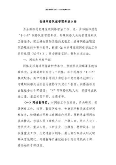 【七哥公文】2025年:【七哥公文】街道网格队伍管理考核办法+更多免费公文+VX:QiGeGongWen2024+更多免费公文+VX:QiGeGongWen2024