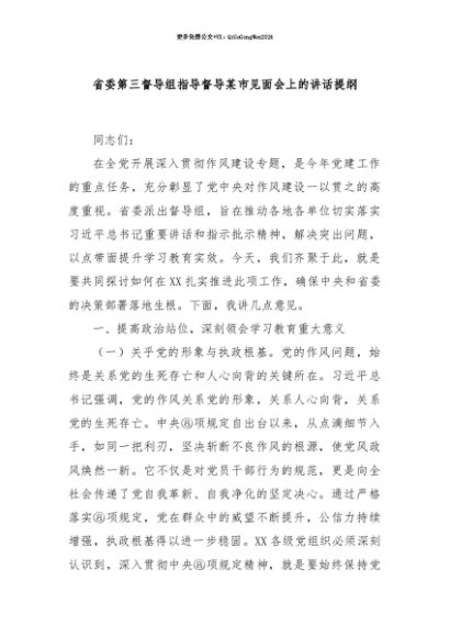 【七哥公文】2025年:【七哥公文】省委第三督导组指导督导某市见面会上的讲话提纲+更多免费公文+VX:QiGeGongWen2024+更多免费公文+VX:QiGeGongWen2024
