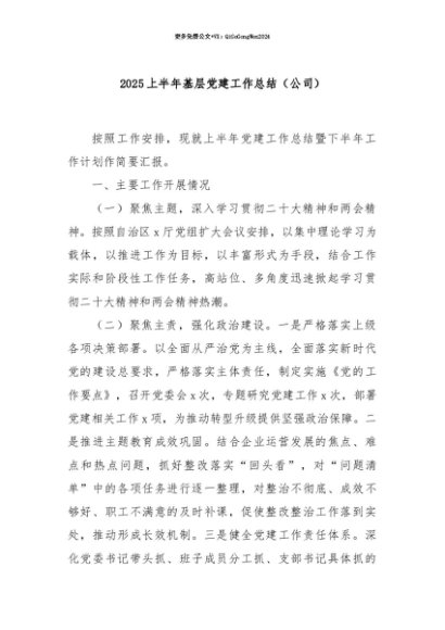 【七哥公文】2025年:【七哥公文】2025 上半年基层党建工作总结(公司)+更多免费公文+VX:QiGeGongWen2024+更多免费公文+VX:QiGeGongWen2024