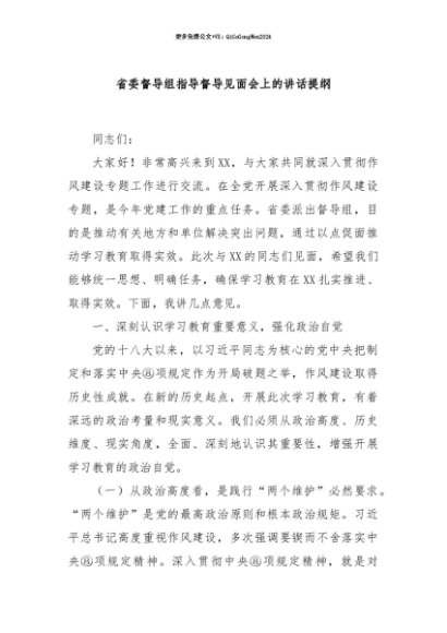 【七哥公文】2025年:【七哥公文】省委督导组指导督导见面会上的讲话提纲+更多免费公文+VX:QiGeGongWen2024+更多免费公文+VX:QiGeGongWen2024