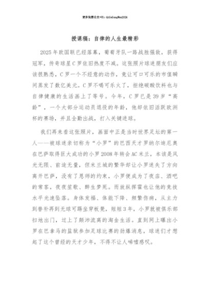 【七哥公文】2025年:【七哥公文】授课稿:自律的人生最精彩+更多免费公文+VX:QiGeGongWen2024+更多免费公文+VX:QiGeGongWen2024
