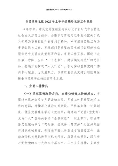 【七哥公文】2025年:【七哥公文】市民政局党组2025年上半年抓基层党建工作总结+更多免费公文+VX:QiGeGongWen2024+更多免费公文+VX:QiGeGongWen2024
