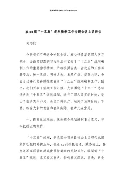 【七哥公文】2025年:【七哥公文】在州“十五五”规划编制工作专题会议上的讲话(2)+更多免费公文+VX:QiGeGongWen2024+更多免费公文+VX:QiGeGongWen2024