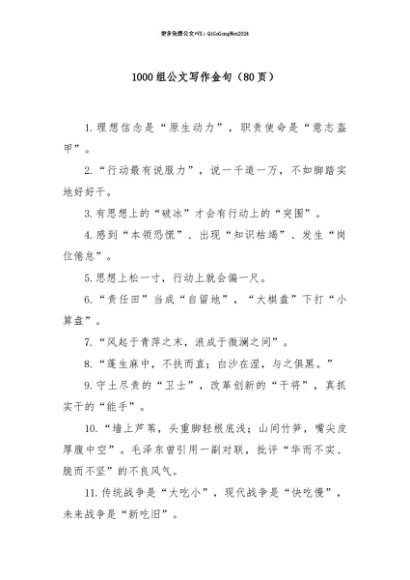 【七哥公文】2025年:【七哥公文】1000组公文写作金句(80页)+更多免费公文+VX:QiGeGongWen2024+更多免费公文+VX:QiGeGongWen2024