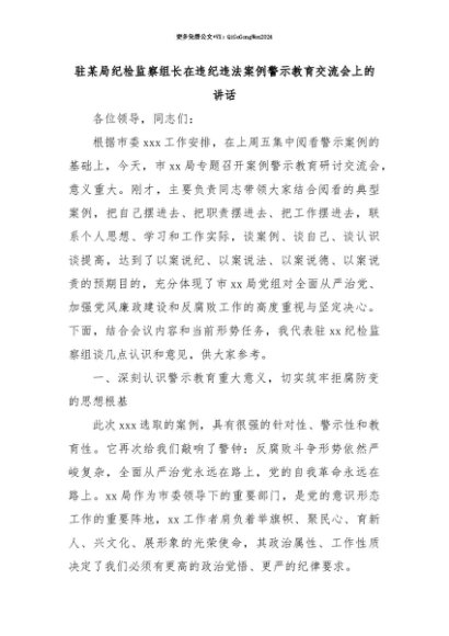 【七哥公文】2025年:【七哥公文】驻某局纪检监察组长在违纪违法案例警示教育交流会上的讲话+更多免费公文+VX:QiGeGongWen2024+更多免费公文+VX:QiGeGongWen2024