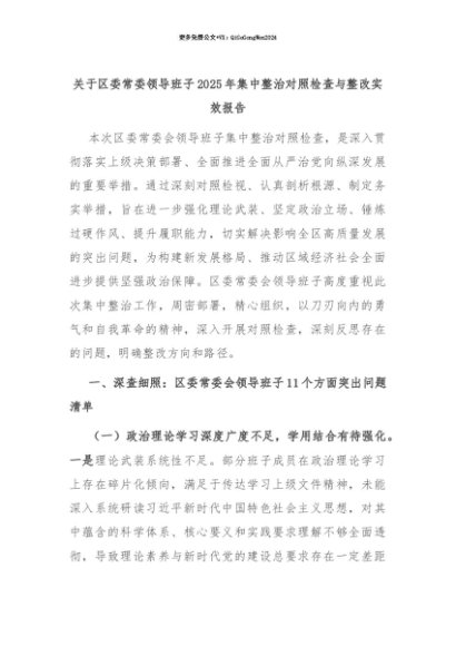 【七哥公文】2025年:【七哥公文】关于区委常委领导班子2025年集中整治对照检查与整改实效报告+更多免费公文+VX:QiGeGongWen2024+更多免费公文+VX:QiGeGongWen2024