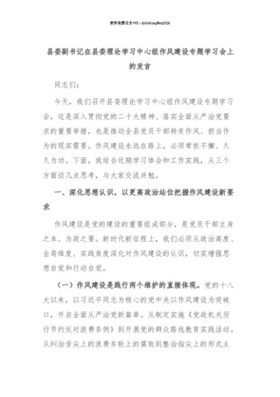 【七哥公文】2025年:【七哥公文】县委副书记在县委理论学习中心组作风建设专题学习会上的发言+更多免费公文+VX:QiGeGongWen2024+更多免费公文+VX:QiGeGongWen2024