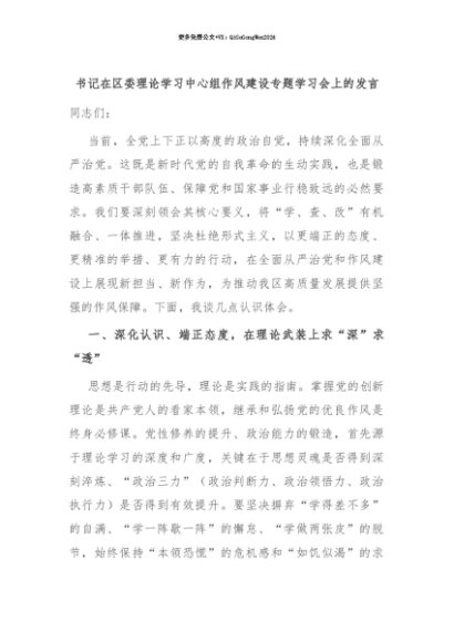 【七哥公文】2025年:【七哥公文】书记在区委理论学习中心组作风建设专题学习会上的发言+更多免费公文+VX:QiGeGongWen2024+更多免费公文+VX:QiGeGongWen2024