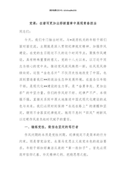 【七哥公文】2025年:【七哥公文】党课:在谱写更加出彩新篇章中展现青春担当+更多免费公文+VX:QiGeGongWen2024+更多免费公文+VX:QiGeGongWen2024
