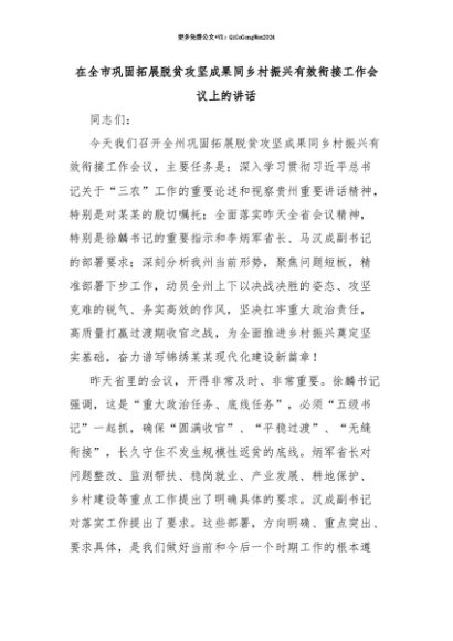【七哥公文】2025年:【七哥公文】在全市巩固拓展脱贫攻坚成果同乡村振兴有效衔接工作会议上的讲话+更多免费公文+VX:QiGeGongWen2024+更多免费公文+VX:QiGeGongWen2024