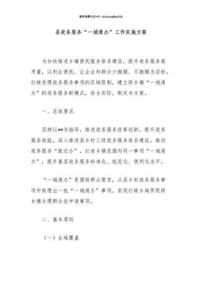 【七哥公文】2025年:【七哥公文】县政务服务“一城通办”工作实施方案+更多免费公文+VX:QiGeGongWen2024+更多免费公文+VX:QiGeGongWen2024