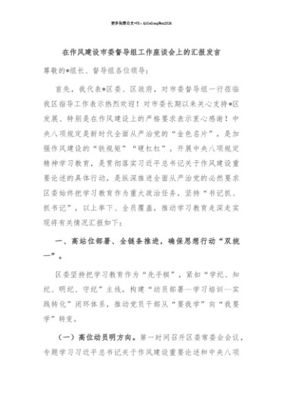 【七哥公文】2025年:【七哥公文】在作风建设市委督导组工作座谈会上的汇报发言+更多免费公文+VX:QiGeGongWen2024+更多免费公文+VX:QiGeGongWen2024